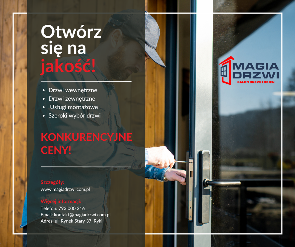 Magia Drzwi to firma, która zdobyła zaufanie wielu klientów dzięki wieloletniemu doświadczeniu w branży. Nasza wiedza i umiejętności pozwalają nam skutecznie realizować nawet najbardziej skomplikowane projekty. Współpracujemy z renomowanymi producentami, co pozwala nam oferować wysokiej jakości drzwi oraz akcesoria, które są trwałe i funkcjonalne. Nasz zespół montażowy jest wykwalifikowany i systematycznie podnosi swoje umiejętności, aby być na bieżąco z nowinkami w branży. Klienci z Ryk, Dęblina, Puław, Garwolina oraz okolic doceniają naszą rzetelność i profesjonalizm, co przekłada się na liczne pozytywne opinie. Dążymy do tego, aby każdy klient czuł się pewnie, powierzając nam montaż swoich drzwi. Dzięki naszym doświadczeniu oraz zaangażowaniu, możemy oferować usługi, które są nie tylko skuteczne, ale także dostosowane do indywidualnych potrzeb klientów, co buduje nasze silne relacje z klientami.